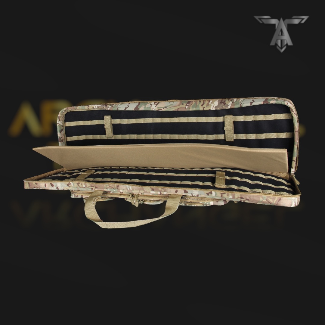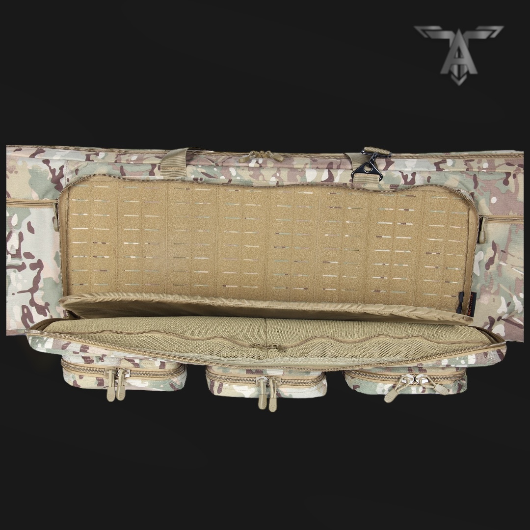 - Major compartment accommodates two rifles up to 52″long