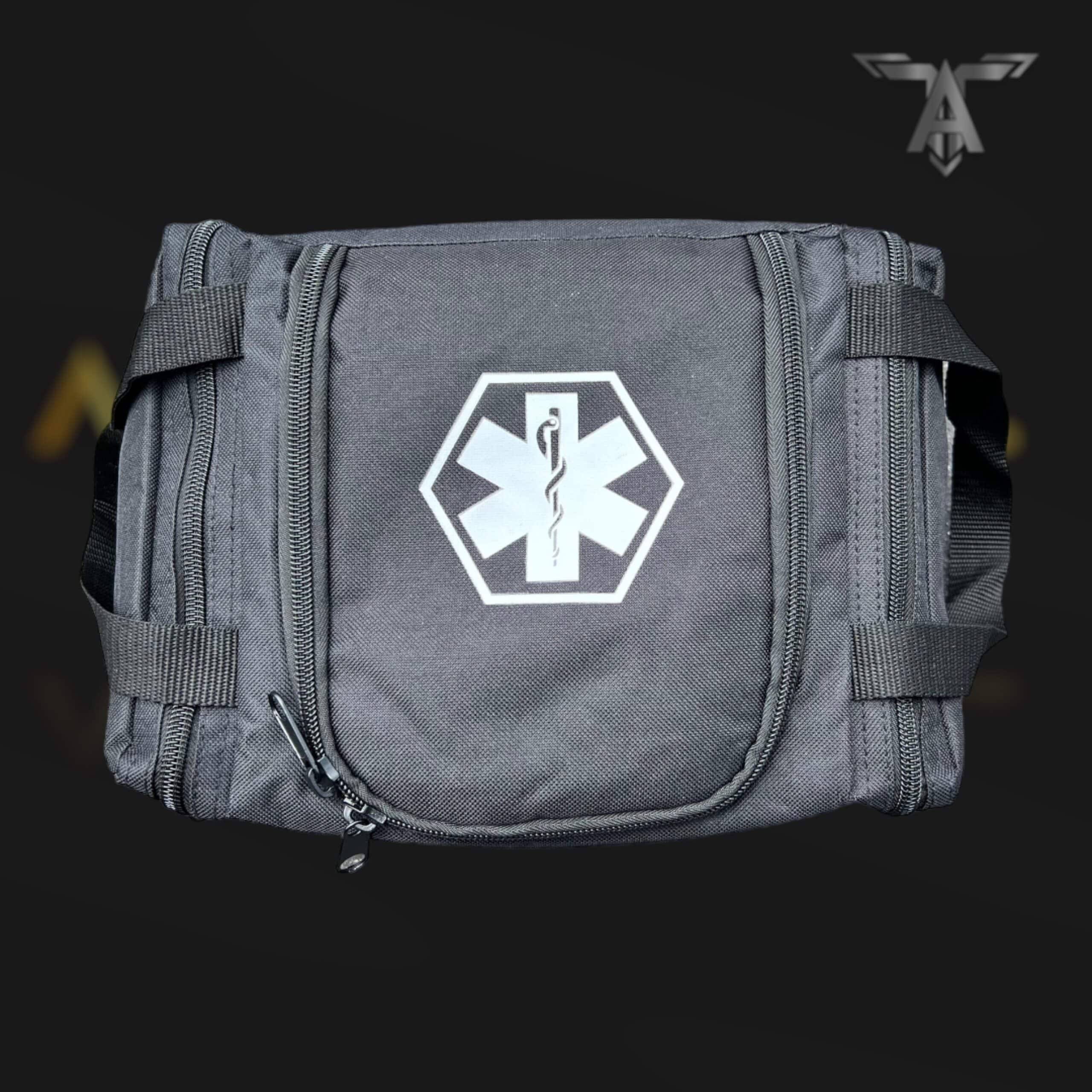 Stay prepared without the clutter. Our First Aid Bag measures 10.5″ x 5″ x 8″ and is designed to make organizing your medical supplies simple and stress-free. The large main pocket holds all your essential gear, while the two smaller side pockets are perfect for quick-access items like scissors, gloves, or bandages.