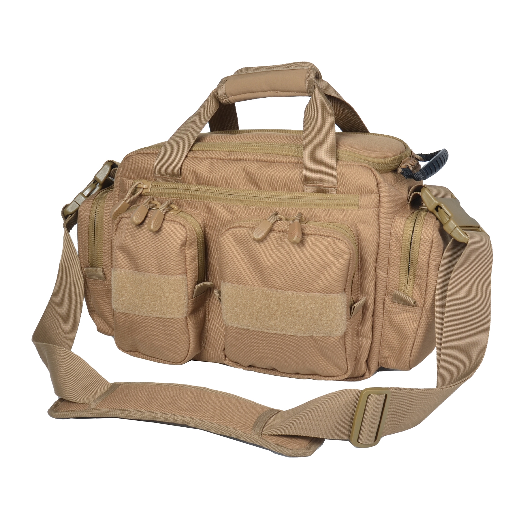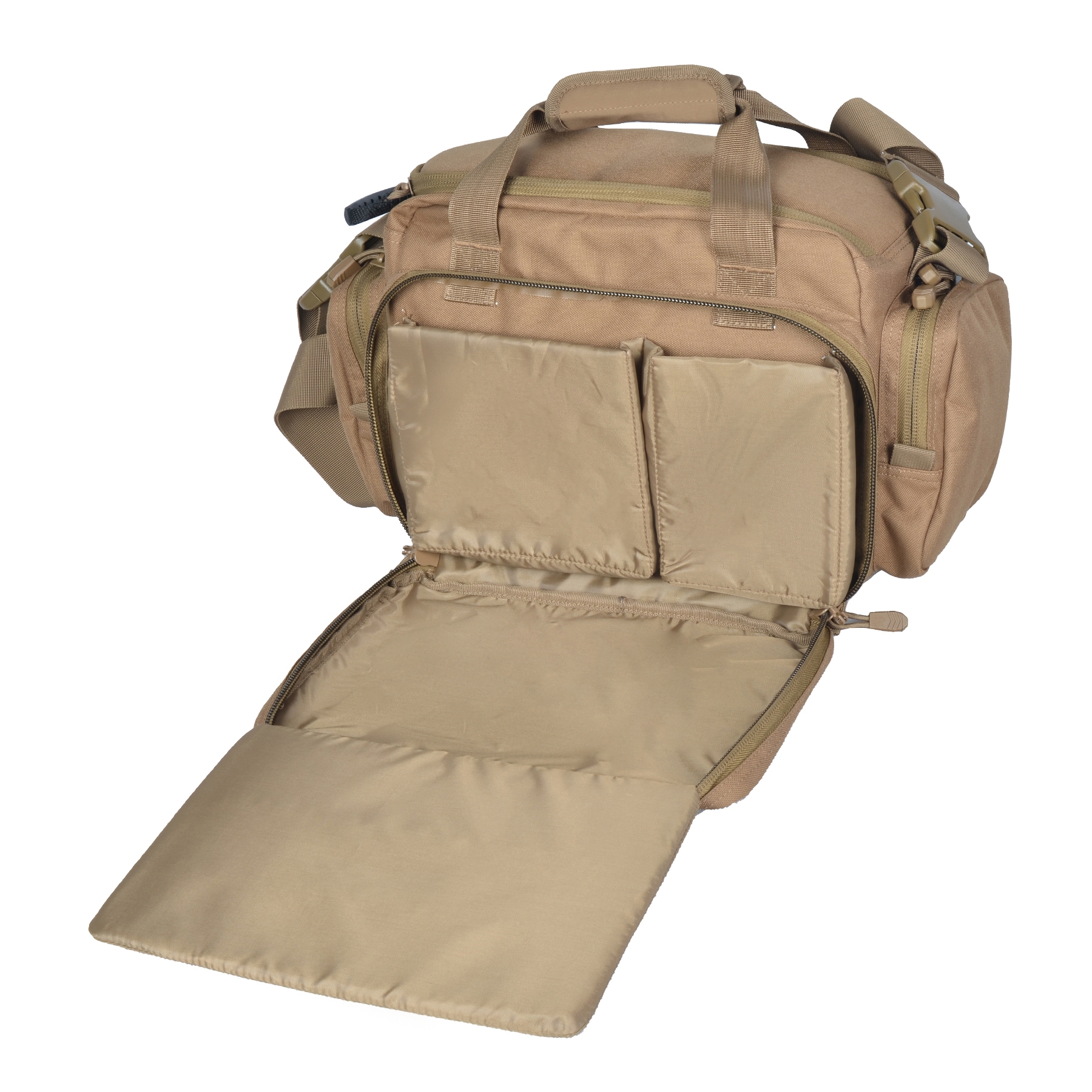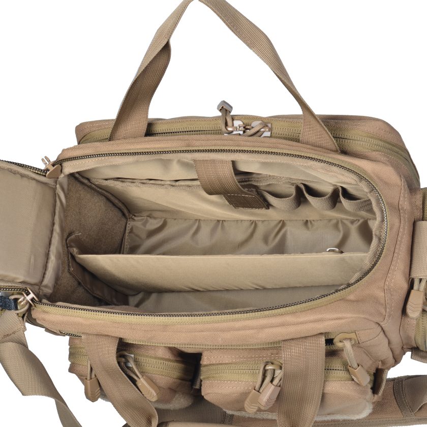 - Interior side wall compartment with nylon strap to secure with 3 elastic magazine holders